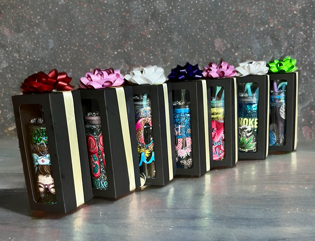 Topsy Tumblers was created from a love of unique drinkware and the joy that comes from owning something made just for you. Every tumbler we make is thoughtfully designed and handcrafted with care, ensuring no two are ever exactly the same. From eye-catching snow globe tumblers to bold wraps and custom designs, our tumblers are made to stand out and bring a little extra fun to your everyday sips.